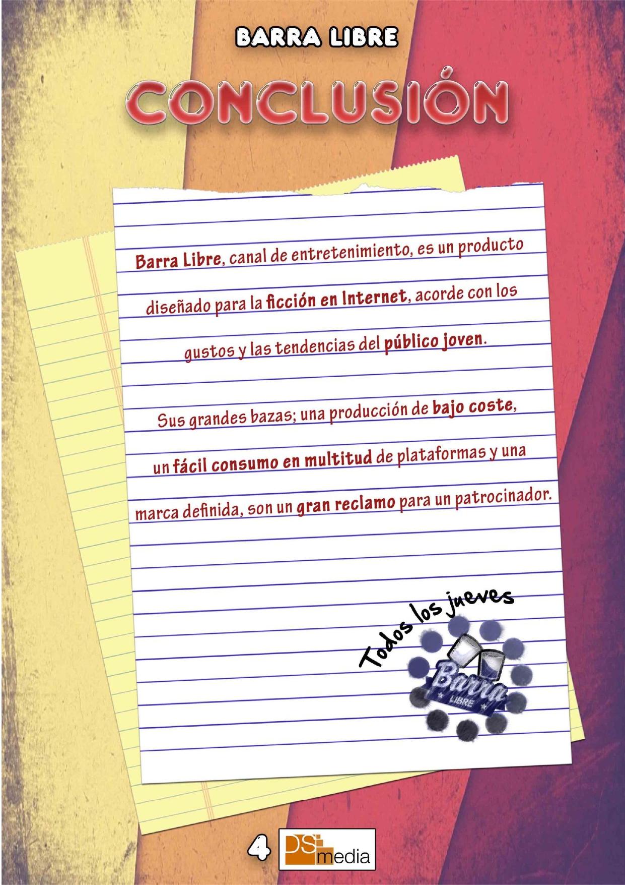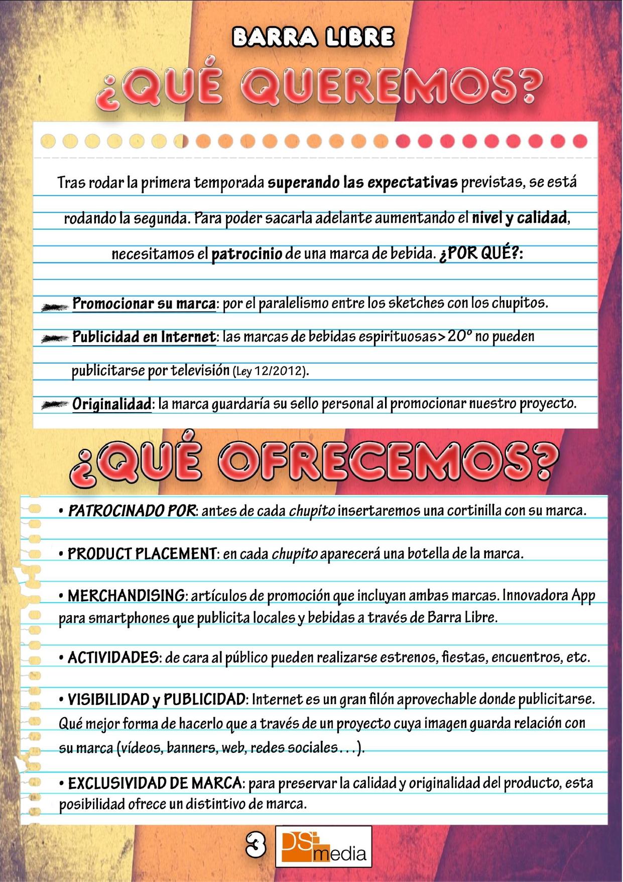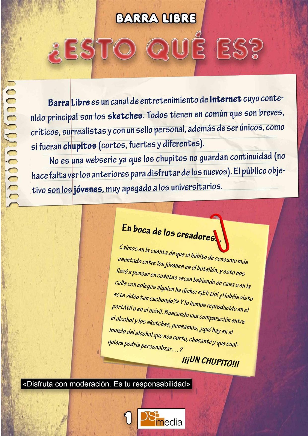Dossier de venta del canal de entretenimiento de sketches, Barra Libre. Diseño y maquetación del contenido para DS media.