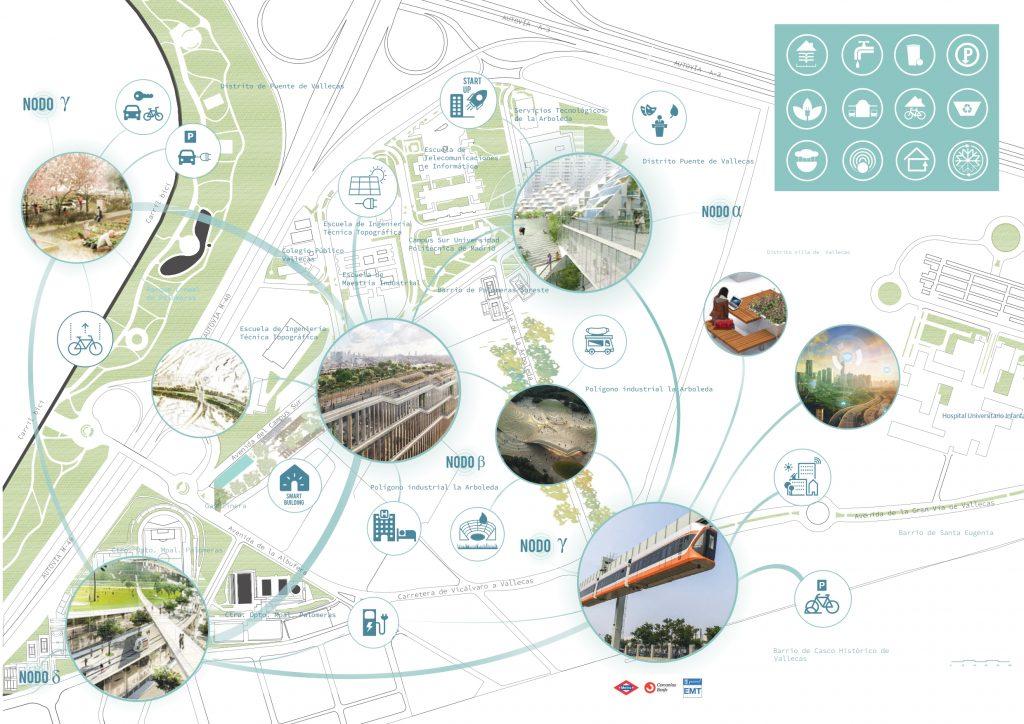 Maquetación del plano del prototipo de barrio sostenible La Arboleda, para el concurso Reinventing Cities, promovido por Climate CoLab e I-Catalist.